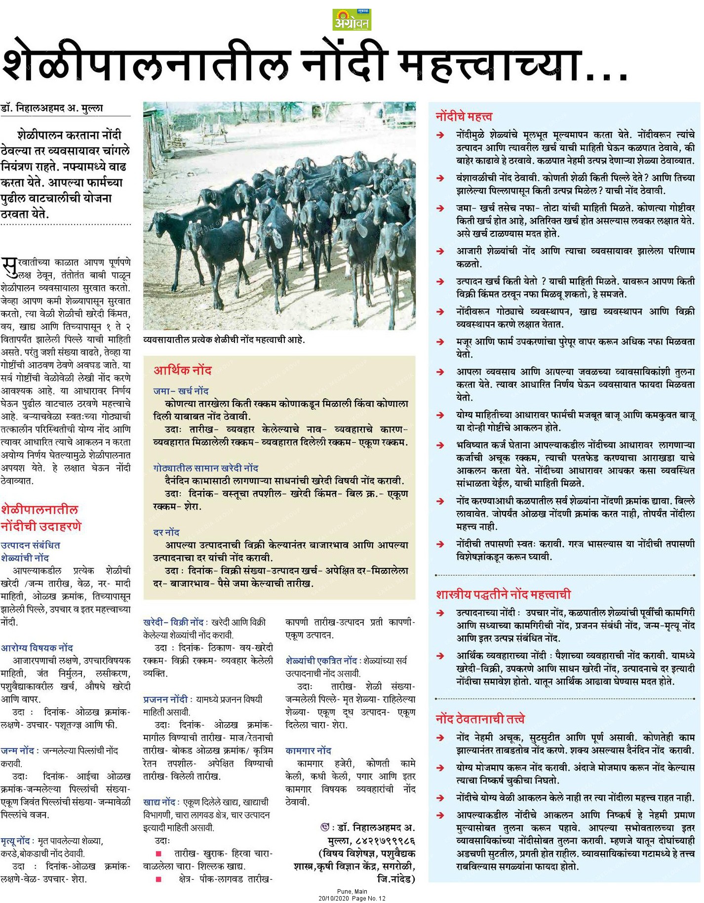 दिनांक 20/10/2020 रोजी दैनिक अग्रोवन या वर्तमान पत्रामध्ये शेळीपालन व्यवसायातील नोंदीचे महत्त्व या विषयावरील लेख प्रकाशित झाला.